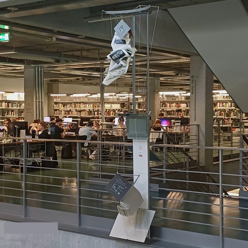 Aus Anlass der bundesweiten Aktionswoche „Treffpunkt Bibliothek” mit dem diesjährigen Themenschwerpunkt „Schätze” hat der Künstler Bernhard Nürnberger im dritten Lichthof der UB seine Installation „thesaurus capitalis II” aufgebaut: