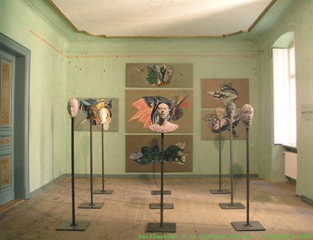 Als ich im Sommer 2009 in Begleitung einiger meiner Assemblagen, die sich anlässlich einer Ausstellung in Spandau zwei Jahre zuvor in postantike Grylloi verwandelt hatten, in die Abguss-Sammlung komme, um sie inmitten der Figurenfülle der Gipse dort zu fotografieren, streben drei von ihnen geradewegs auf den Abguss des barberinischen Fauns zu. Sie gruppieren sich um ihn und überzeugen mich sofort: Meine Gryllen und der Faun gehören zusammen..