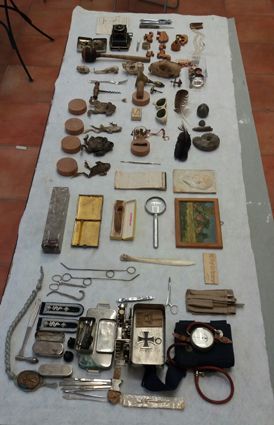 In einem Metallrahmen fordern Spiegel und Plastiken aus Gips und Naturstein die Betrachterin bzw. den Betrachter dazu auf, die vielfältigen Formen der Installation spielerisch mit den eigenen Augen und der eigenen Phantasie in das „Schatzhaus”, „thesaurus“, hinein zu projizieren.