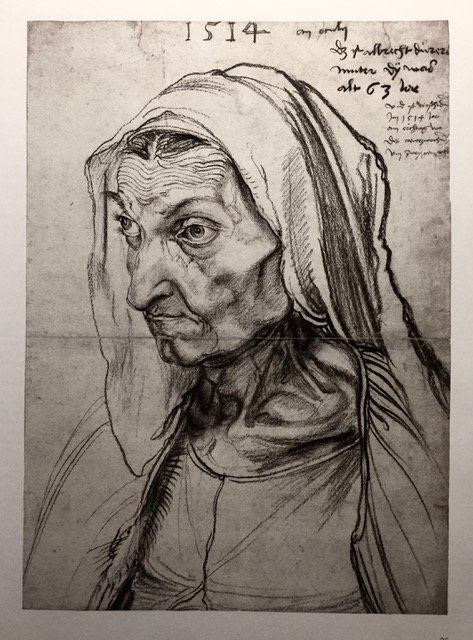 Und schmerzlich für Albrecht Dürer: 1514 stirbt seine Mutter, nachdem sie ein Jahr lang elendig dahinsiechte. Er hing so sehr an ihr. Albrecht war ihr drittes Kind, geboren am 21, Mai 1471 in Nürnberg. 18 Kinder hatte Barbara Dürer geb. Holper zwischen 1468 und 1492 zur Welt gebracht. Es gibt diese erschütternde Kohlezeichnung im Kupferstichkabinett in Berlin, die Albrecht wenige Wochen vor ihrem Tod machte. Sie starb mit 63 Jahren.