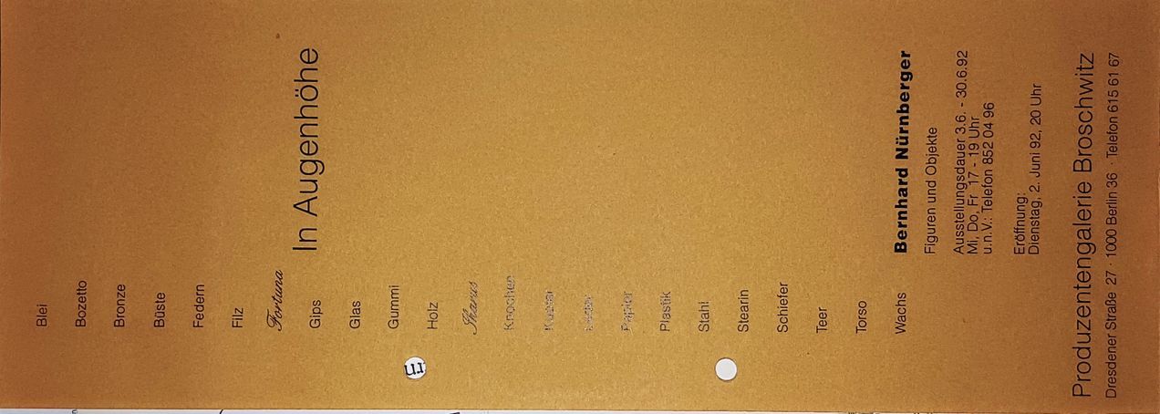 Bernhard Nürnberger, 1943 in Goslar geboren, studierte Kunstpädagogik an der Hochschule für Bildende Künste Berlin und war dort Meisterschüler von Prof. Ludwig Gabriel Schrieber. Der Maler, Zeichner, Karikaturist und Bildhauer lebt und arbeitet in Berlin.