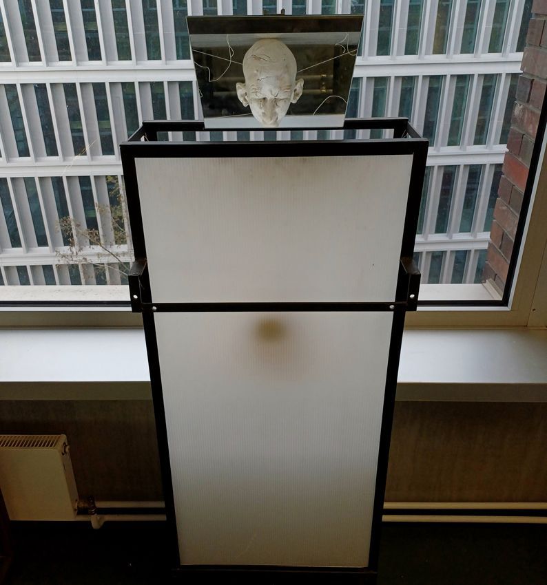 In einem Metallrahmen fordern Spiegel und Plastiken aus Gips und Naturstein die Betrachterin bzw. den Betrachter dazu auf, die vielfältigen Formen der Installation spielerisch mit den eigenen Augen und der eigenen Phantasie in das „Schatzhaus”, „thesaurus“, hinein zu projizieren.
